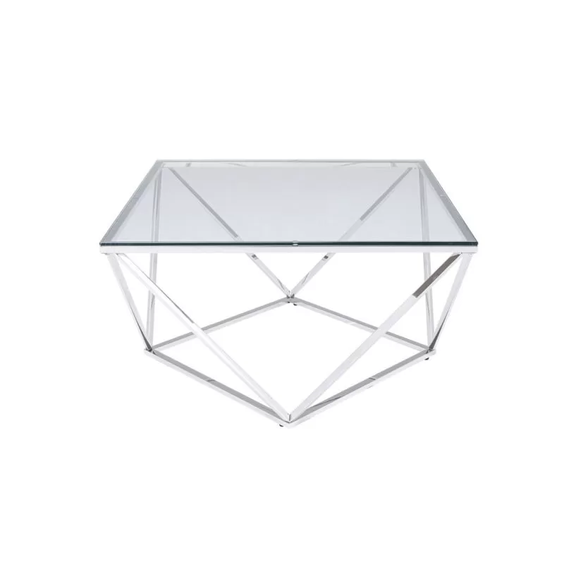 Un esclusivo tavolino caratterizzato dall’elegante basamento con struttura geometrica realizzato in acciaio inossidabile lucidato e dal top quadrato in vetro temperato trasparente da 8 mm, formato 45 x 80 x 80 cm. Una soluzione originale e raffinata per donare una note di classe e di design dal sapore moderno al tuo living.