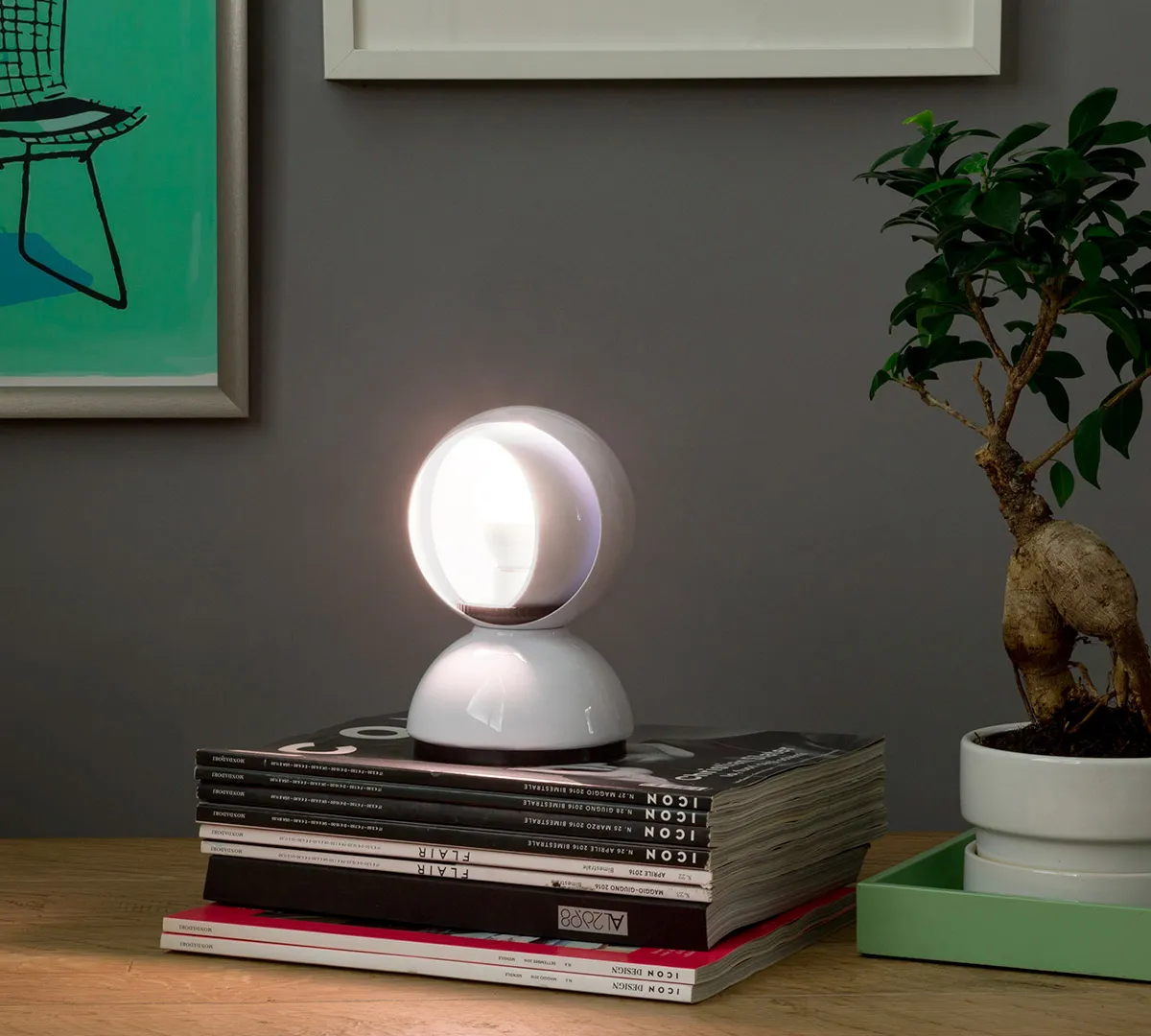 Eclisse può essere utilizzata come lampada da tavolo o montata a parete, con un corpo in metallo verniciato o in versione PVD in finiture innovative come nero, ottone, rame o mirror. Il processo di verniciatura, sostenibile e a basso impatto ambientale, utilizza metalli non dannosi e riduce al minimo le emissioni, garantendo durata e qualità estetica nel tempo. La lampada fa parte delle collezioni permanenti di importanti musei internazionali, tra cui il MoMA di New York e la Triennale Design Museum di Milano, confermandosi un vero capolavoro del design italiano.”