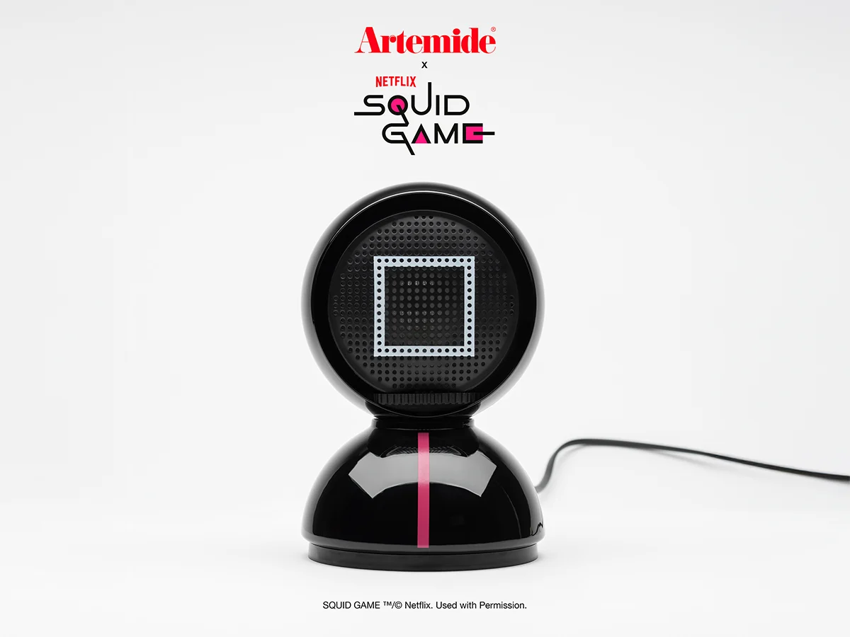Questa versione inedita riprende il fascino intramontabile dell’Eclisse e lo proietta nel presente, intrecciando il linguaggio del design con l’immaginario pop contemporaneo grazie alla collaborazione esclusiva con Netflix, ispirata al fenomeno globale Squid Game. Il principio che l’ha resa celebre resta immutato: un guscio esterno fisso combinato a una calotta interna rotante, che consente di modulare la luce scegliendo tra emissione diretta o diffusa.