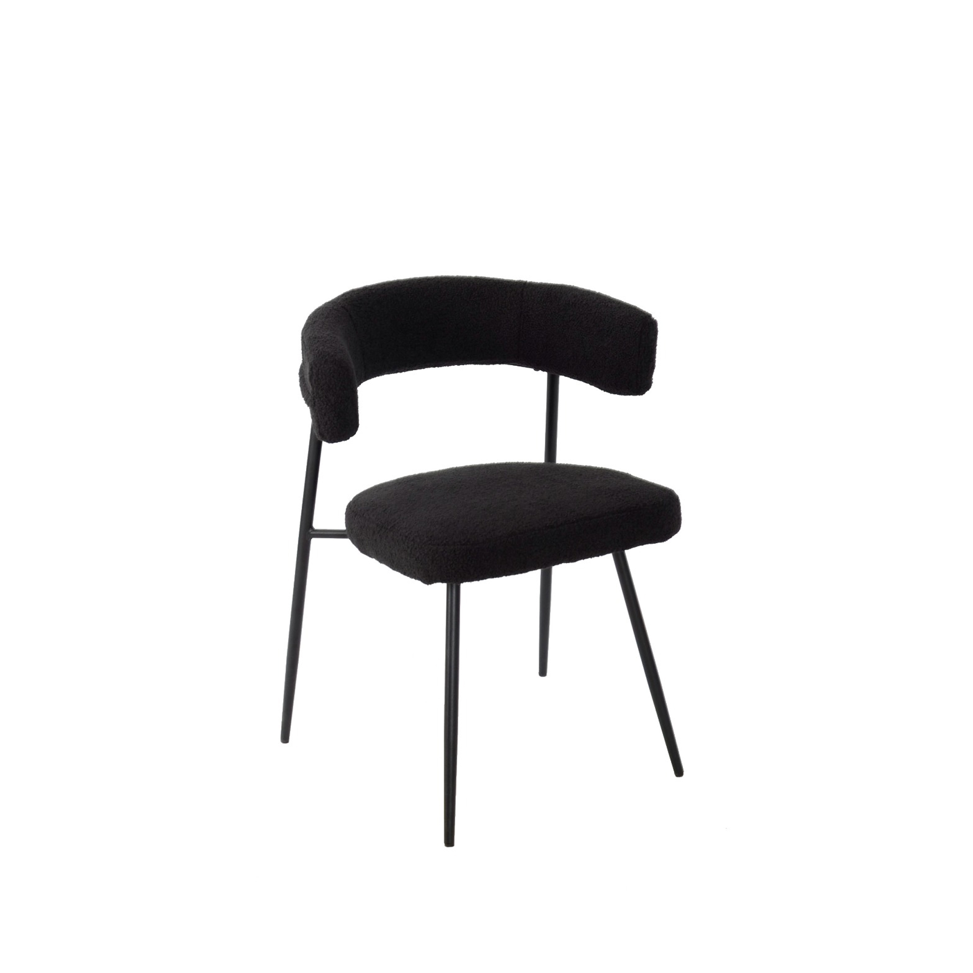 La poltrona FLAM in bouclé nero è una seduta compatta e avvolgente, ideale per dare carattere a soggiorni e zone living contemporanee. Il rivestimento in tessuto bouclé, morbido e materico, esalta le linee curve dello schienale aperto e della seduta generosa, regalando una sensazione di comfort immediato.