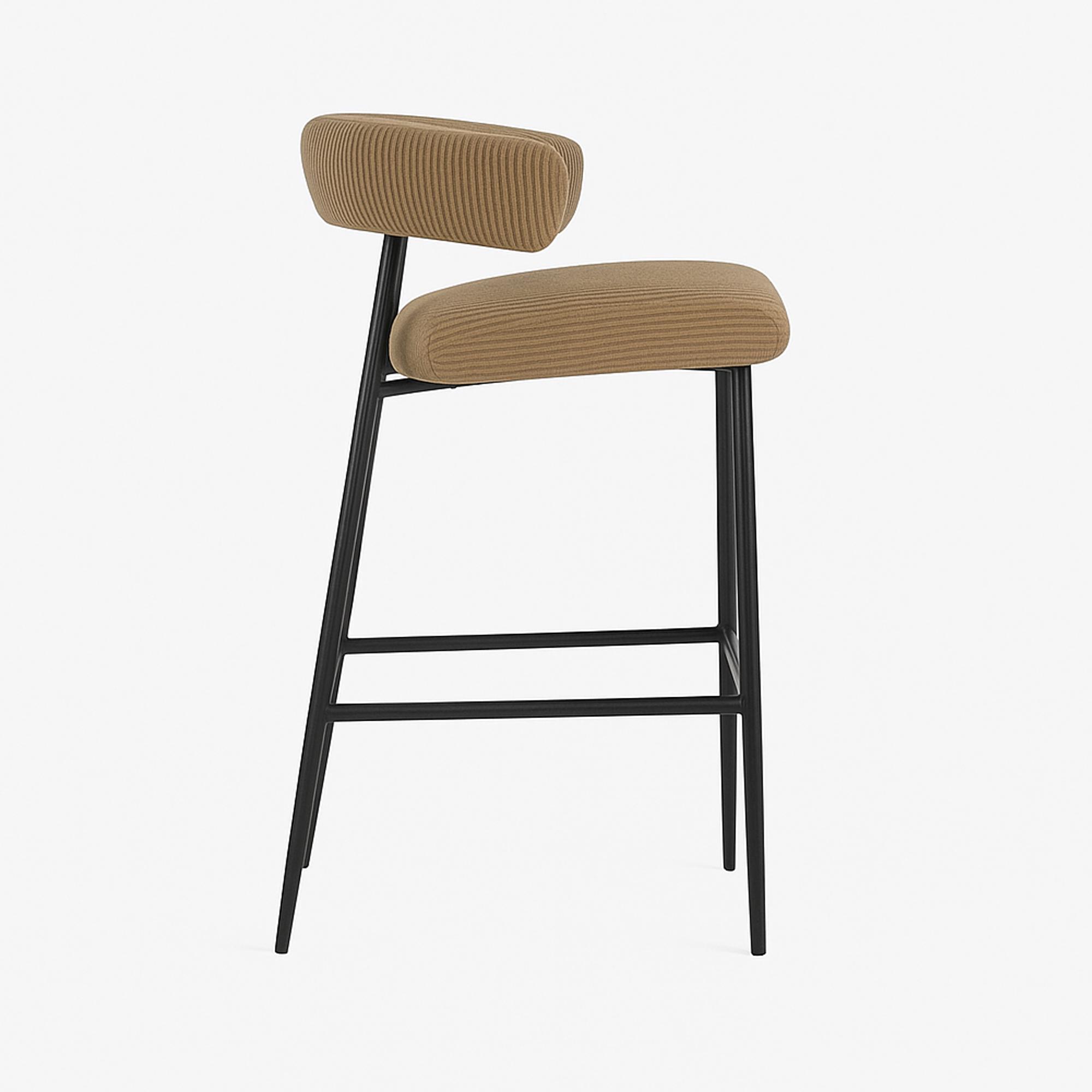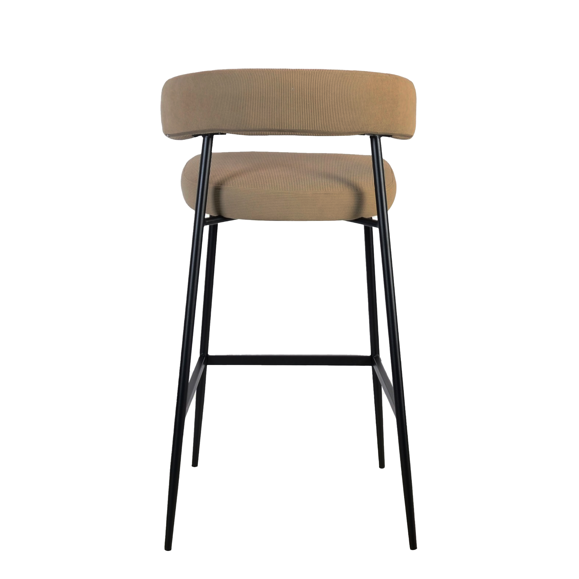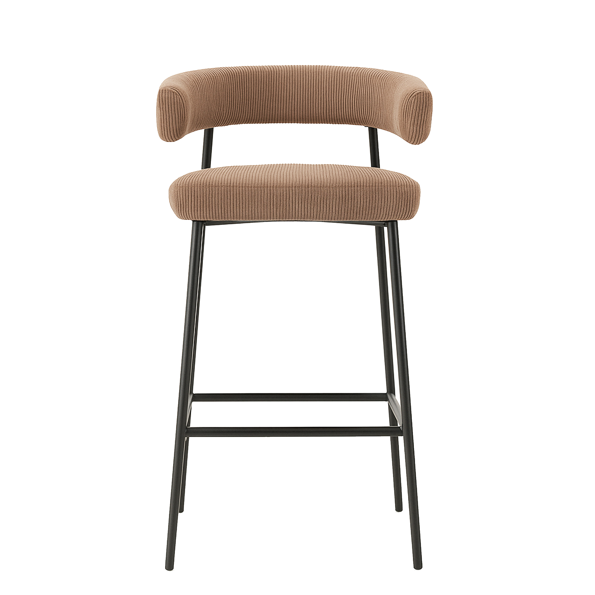 Lo sgabello FLAM in velluto spessorato rigato tortora è una seduta avvolgente e sofisticata, ideale per banconi e penisole in ambienti moderni e accoglienti. Il rivestimento vellutato dal texture rigato color tortora dona calore e morbidezza allo schienale curvo con braccioli integrati, creando un design contemporaneo che invita al comfort.