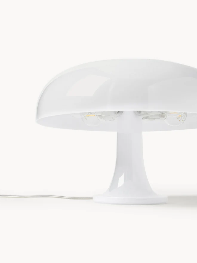 “La lampada Nessino è un’icona del design italiano degli anni ’60, un periodo in cui la modernità ridefiniva gli spazi domestici attraverso l’uso innovativo delle materie plastiche. La sua forma giocosa e organica, ispirata alla natura, unisce estetica e funzionalità, rendendo la lampada un vero e proprio simbolo del design. La colorazione bianca le conferisce un’eleganza sobria e sofisticata, perfetta per ambienti contemporanei e dallo stile minimal.
