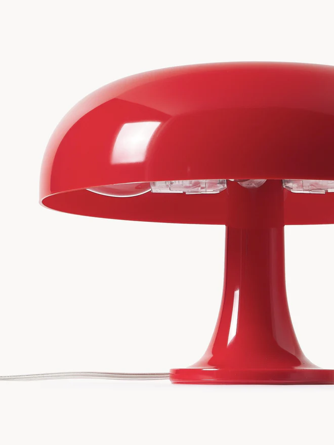 “La lampada Nessino è un’icona del design italiano degli anni ’60, un periodo in cui la modernità ridefiniva gli spazi domestici attraverso l’uso innovativo delle materie plastiche. La sua forma giocosa e organica, ispirata alla natura, unisce estetica e funzionalità, rendendo la lampada un vero e proprio simbolo del design. La colorazione rossa le conferisce un’eleganza sobria e sofisticata, perfetta per ambienti contemporanei e dallo stile minimal.