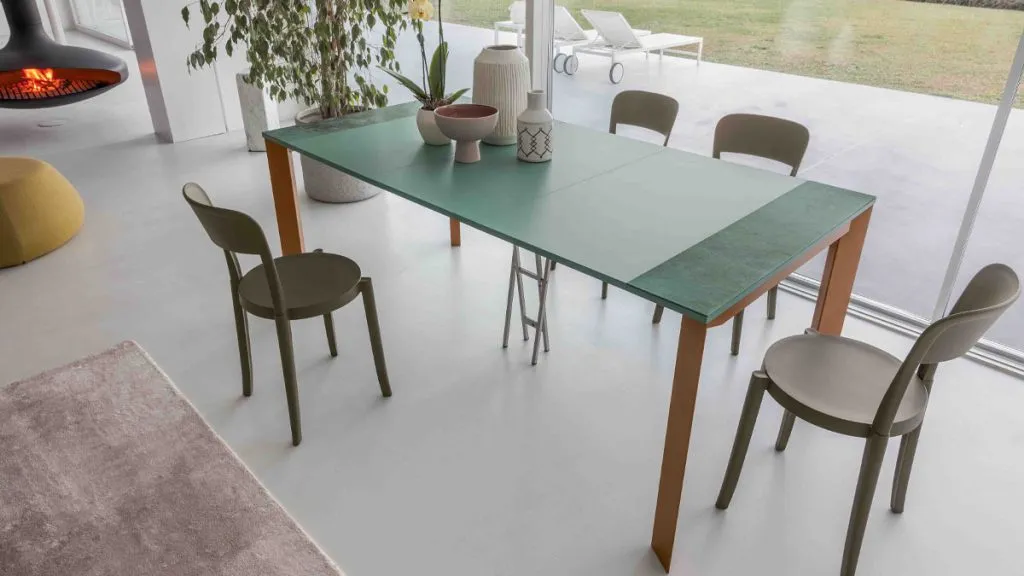 malta o ceramica, 3 allunghe. Gambe centrali di supporto o porta allunghe opzionale Extenso (pag.