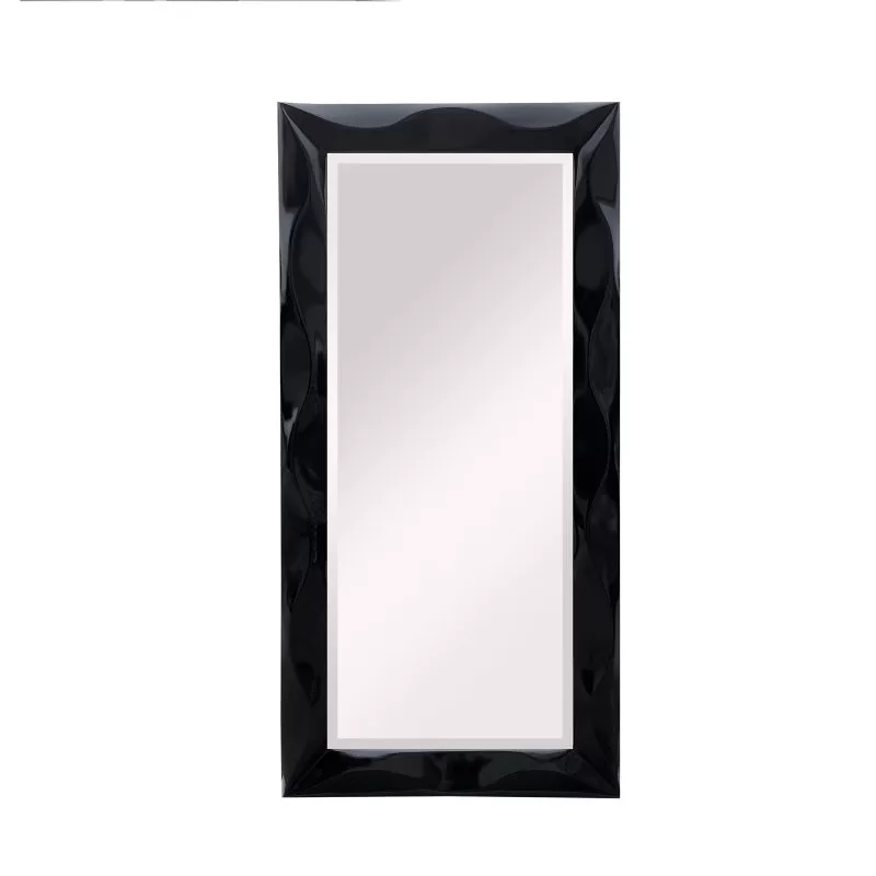 Triki è una grande specchiera dal design semplice e raffinato, caratterizzata dalla cornice in resina lavorata ad onde, in finitura colore nero, misura 89 x 183,5 x 7 cm. Per un look graffiante e moderno!